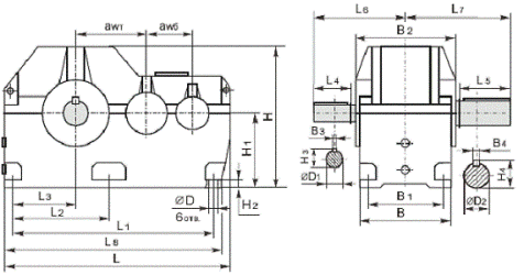 Редуктор цилиндрический двухступенчатый горизонтальный с зацеплением Новикова типа Ц2Н-450, 500, 630