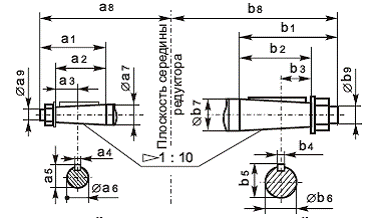 Размеры конца тихоходного вала для присоединения приборов и автоматики