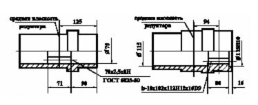 — размеры полых валов редукторов