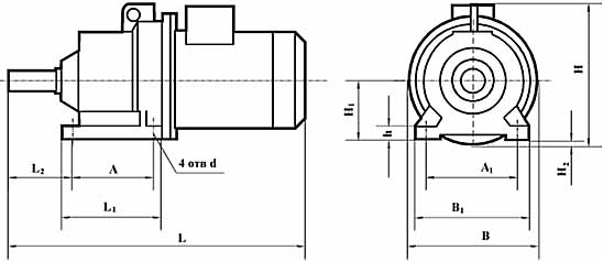 Рис. 1 слева — мотор-редуктор с лапами, справа — мотор-редуктор с фланцами
