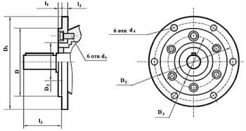 | Тип | l1 | l2 | l3 | D | D1 | D2 | D3 | D5 | d4 | d5 |